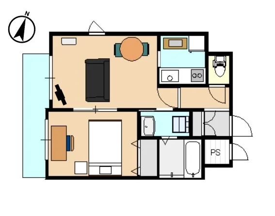 寝室は1つで、リビングのソファー3人掛けです。