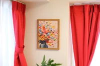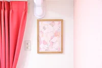 優しいさくら色のアクセントクロスと情熱的なルビーレッドのコントラスト部屋!