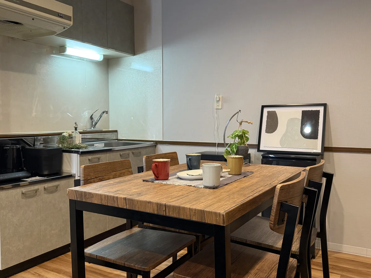 Wi-Fi完備でリモートワークにも対応。洗濯機やバスタブなど、長期滞在にも便利な設備が揃っています。キッチンで簡単な調理も可能です!