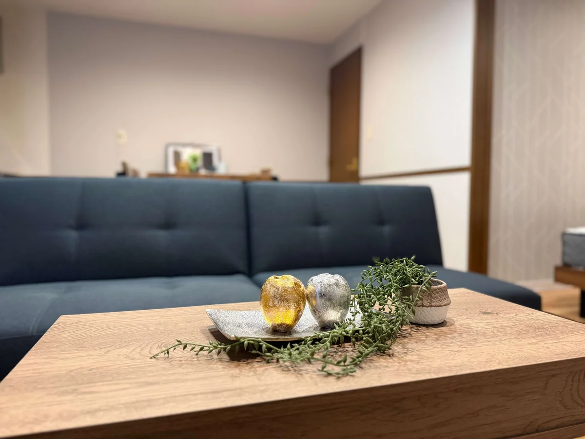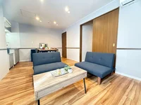 リビングには、ダイニングセット、ソファー、センターテーブルを設置しており、広々と快適に生活ができます。