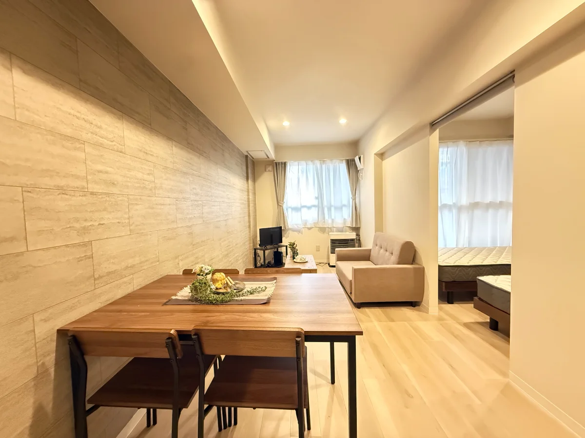 札幌中心地までのアクセス良好!人気の「平岸駅」徒歩10分にあります、1LDKの広々としたマンションのお部屋です。最大5名様まで宿泊可能で、ダイニングテーブルもご用意しており、グループ旅行やご家族での滞在にぴったりです!また、Wi-Fiも完備しておりますので、ビジネスでの滞在にも便利です。